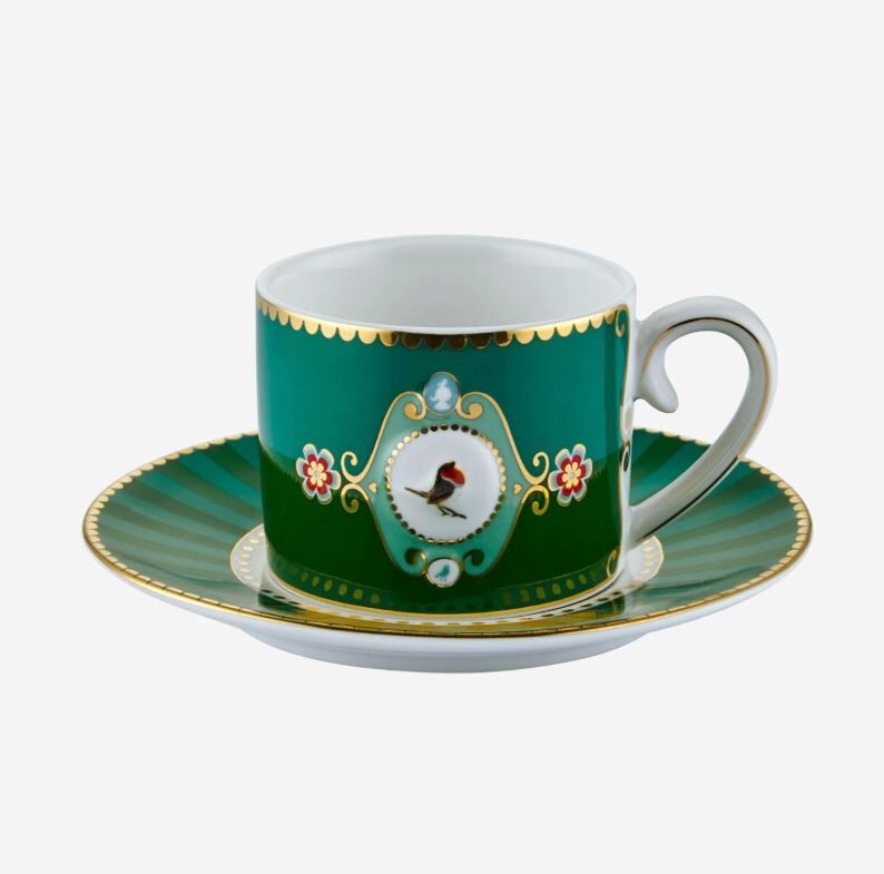 Love Birds Yeşil Madalyon Desenli Kuşlu Kahve Fincanı 125 ml